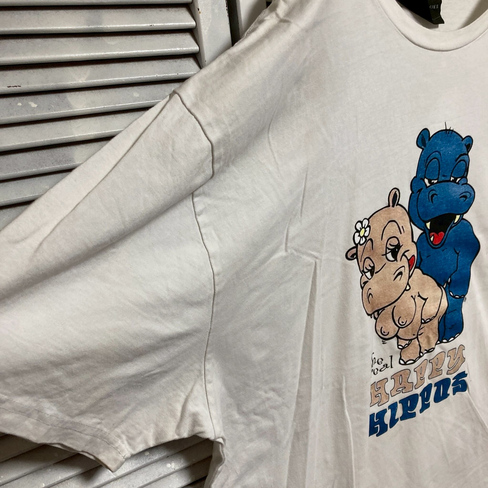 エロ Tシャツ ビンテージ 古着 90s 白 ハッピー ヒポス アニマル セックス カバ