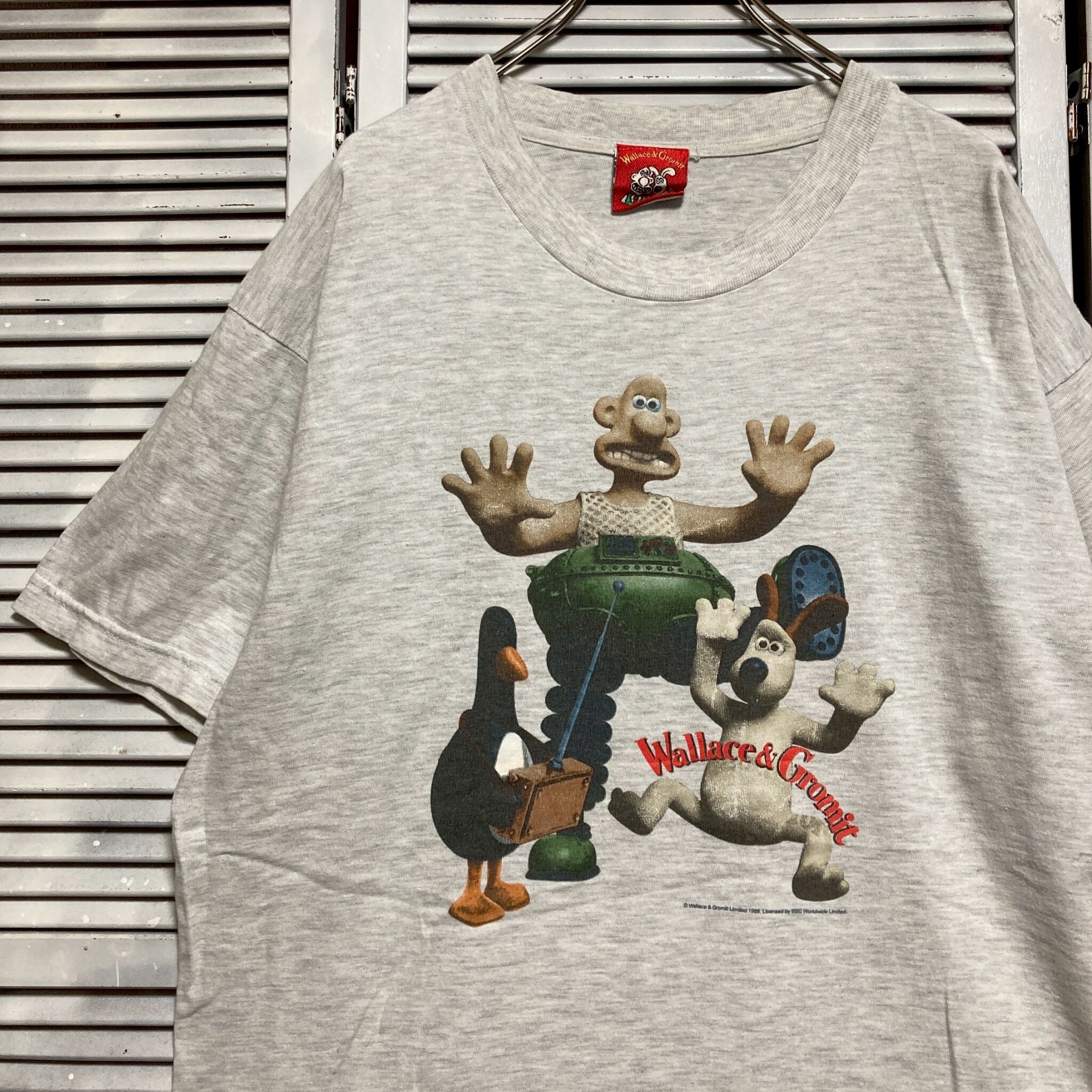 キャラ Tシャツ ビンテージ 古着 90s グレー ウォレスとグルミット Wallace & Gromit アニメ
