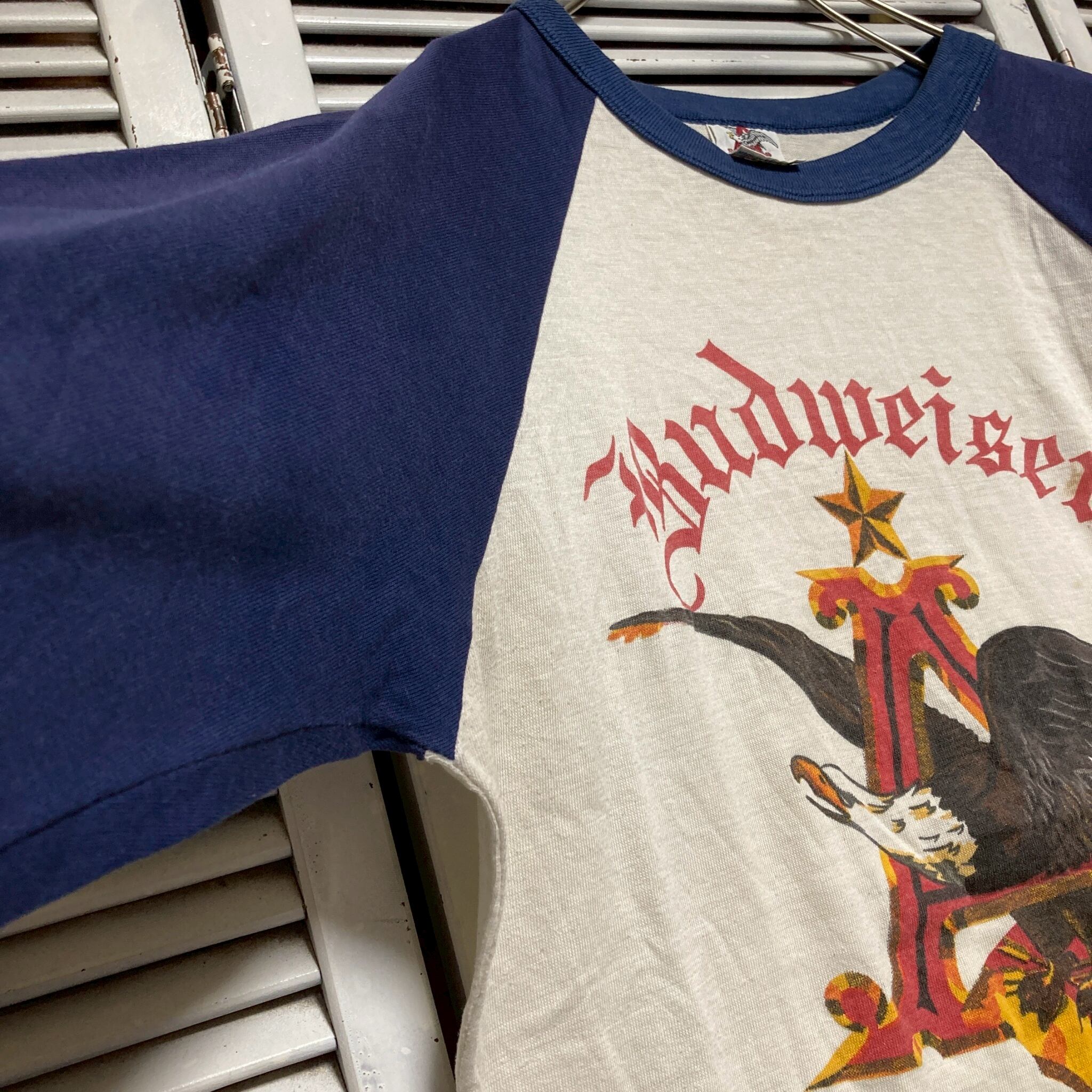 ラグラン Tシャツ 長袖 ロンT ビンテージ 古着 70s 80s 白 Budweiser バドワイザー ビール 7部丈