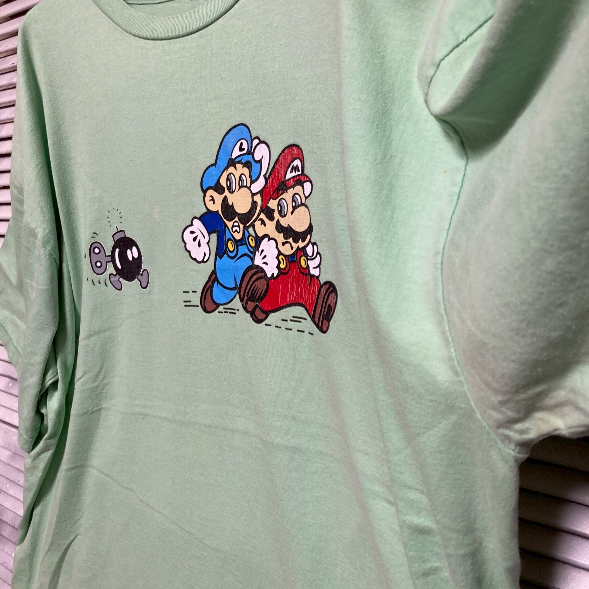 ?? ゲーム Tシャツ ビンテージ 古着 緑 マリオ ルイージ ボム兵 昭和 平成 レトロ キャラ