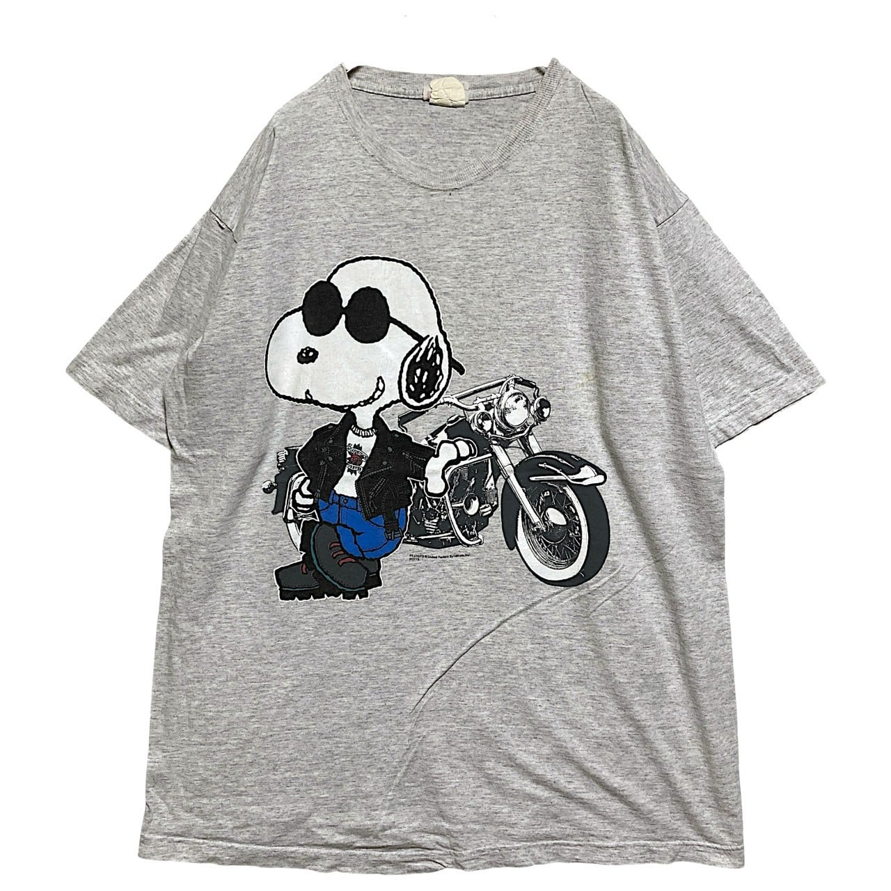 ?? キャラ Tシャツ ビンテージ 古着 90s グレー スヌーピー クール アメリカン バイク ウッドストック フォーエバー