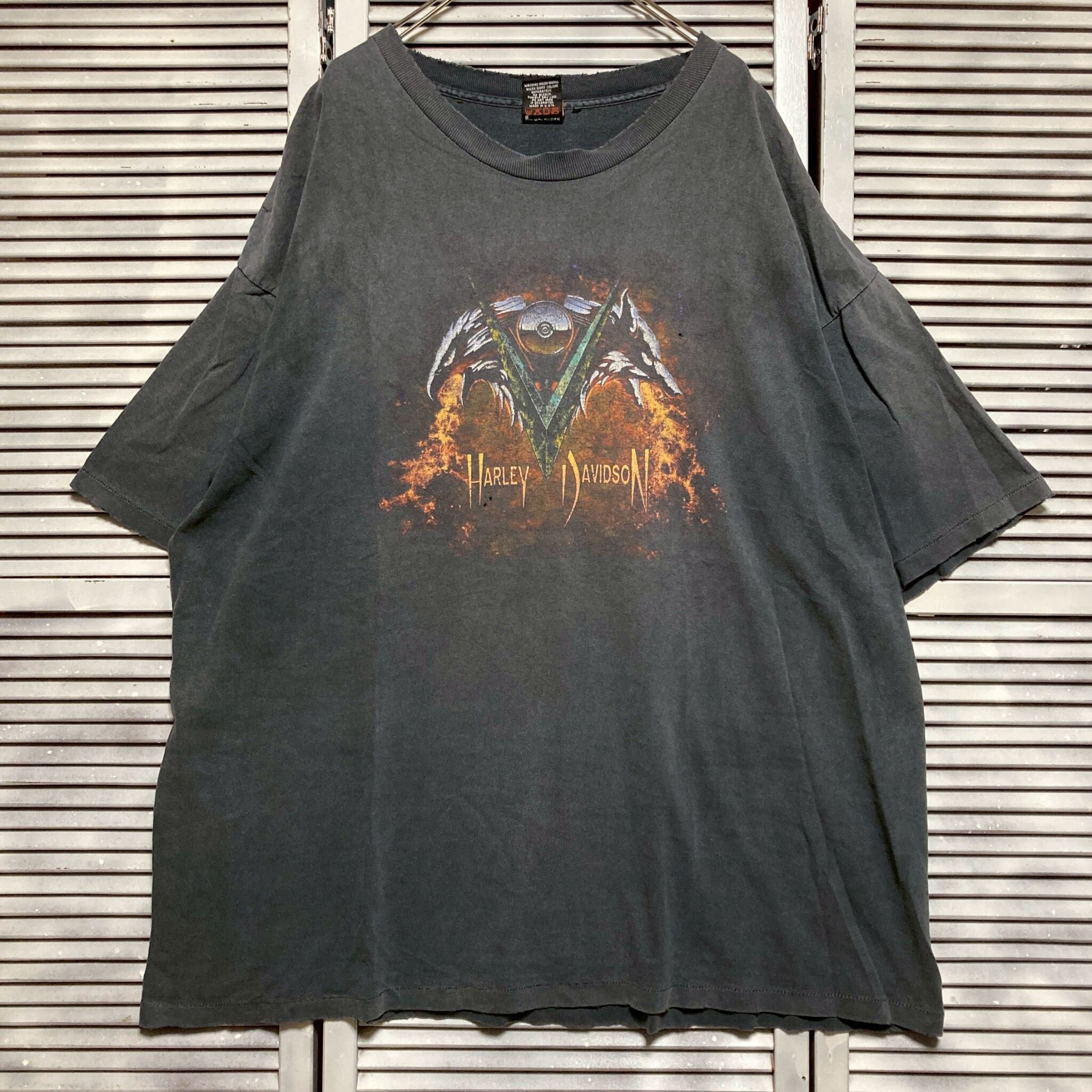 ?? ハーレー Tシャツ ビンテージ 古着 USA製 HARLEY DAVIDSON ダビッドソン イーグル 狼