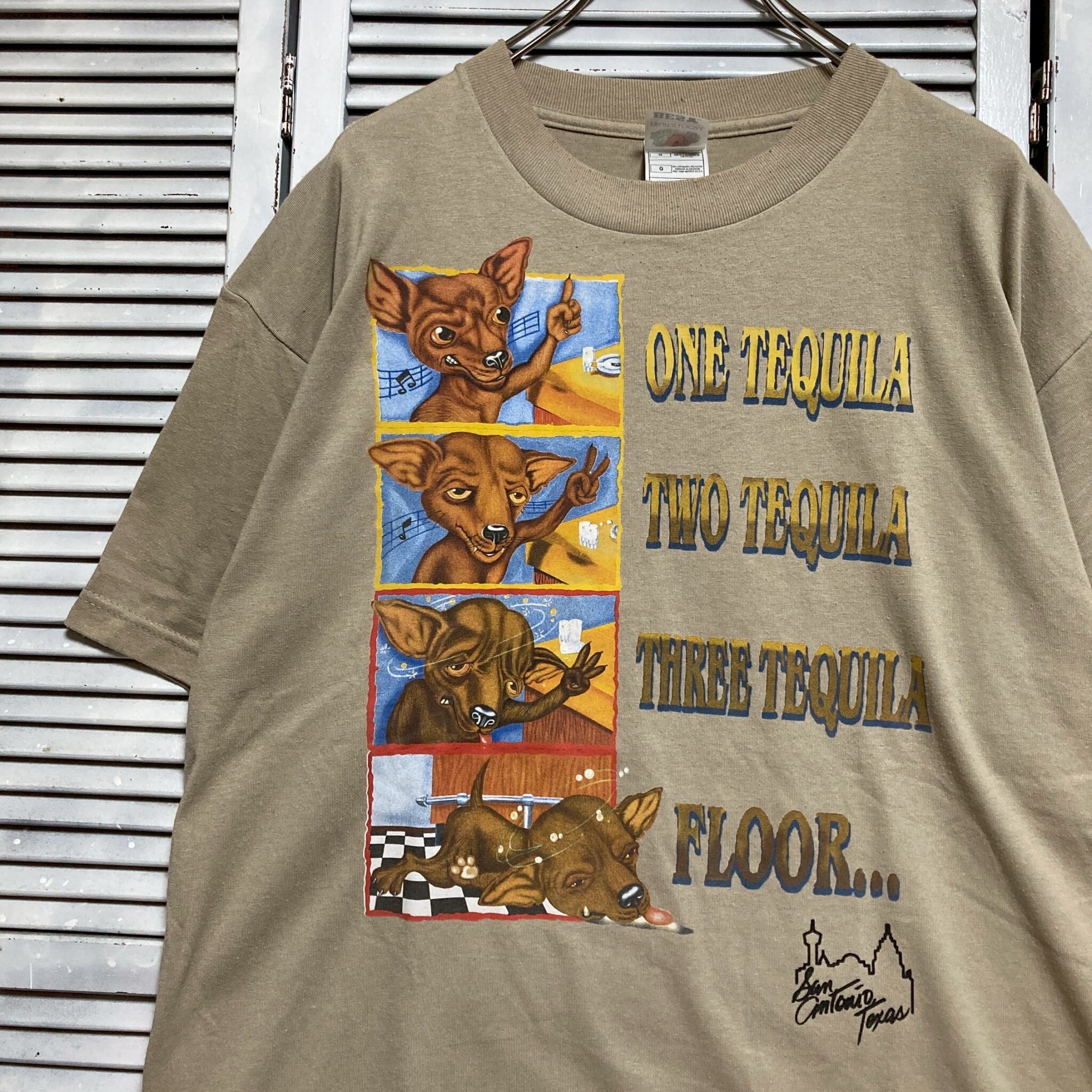 テキーラ Tシャツ ビンテージ 古着 ベージュ タコベル TACOBELL チワワ 犬 パロディ
