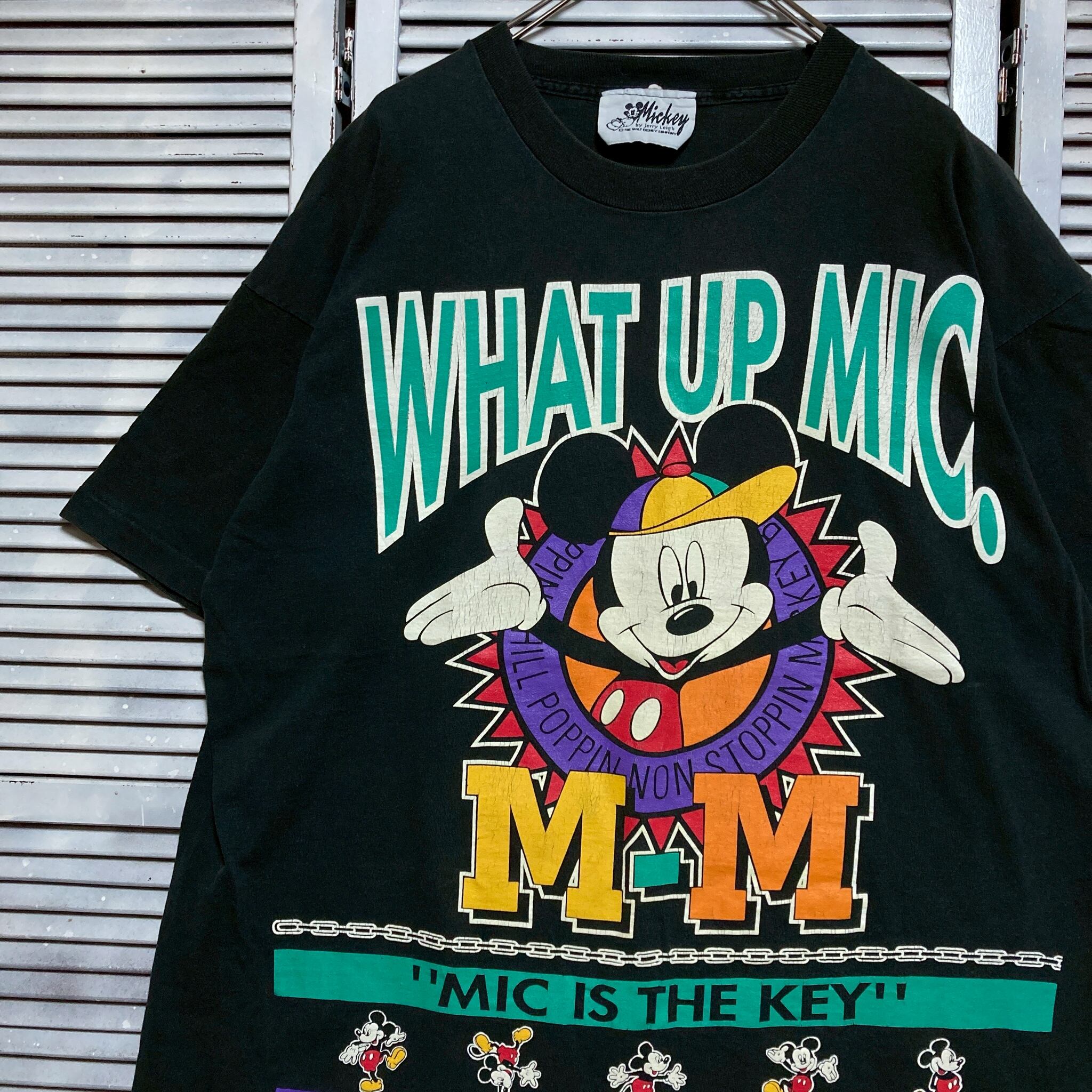 CABE キャラ Tシャツ 90s ミッキー マウス Disney アニメ ディズニー 黒 シングルステッチ 見る角度により目玉の位置が変わる仕様で、昔のミッキーらしい少し狂気じみた感じが最高です。