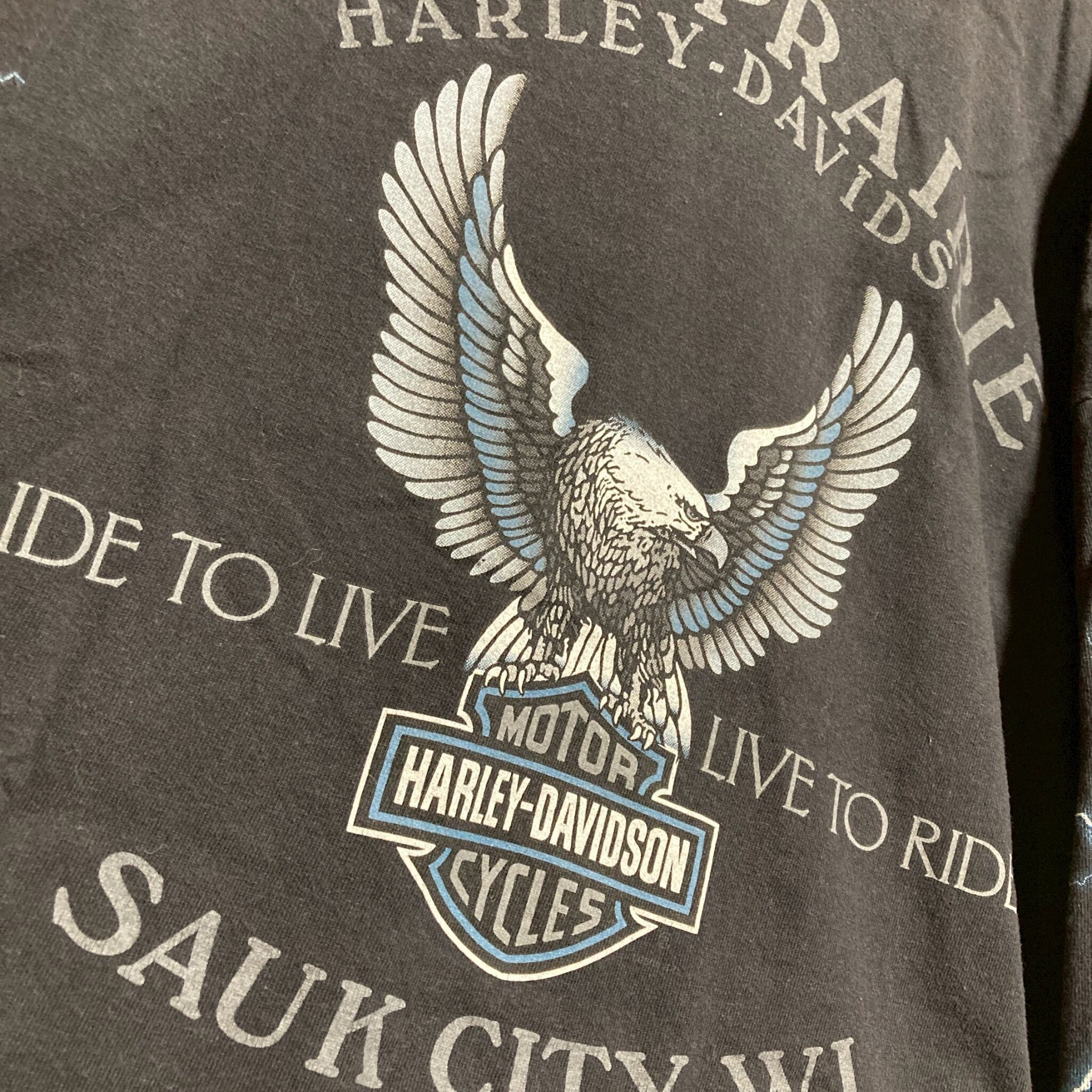CAYQ ハーレー Tシャツ 長袖 ロンT USA製 HARLEY DAVIDSON サンダー ライトニング 青 黒 90s 00s