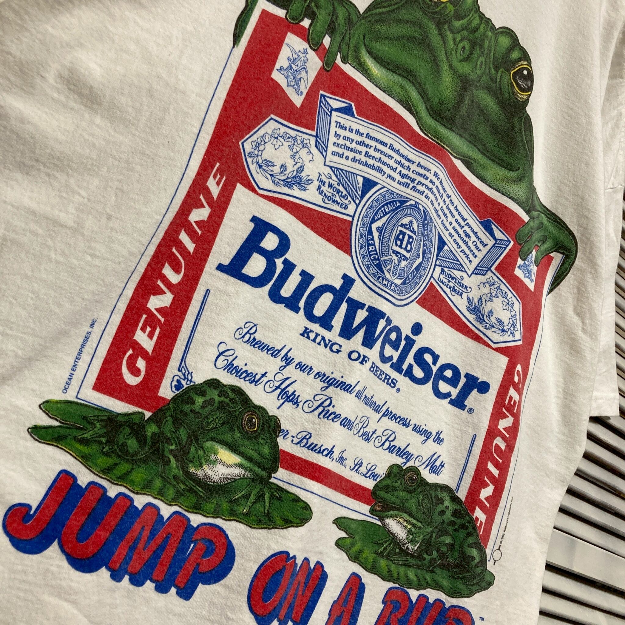CAZZ アドバタイジング Tシャツ USA製 90s バドワイザー Budweiser 蛙 カエル 白