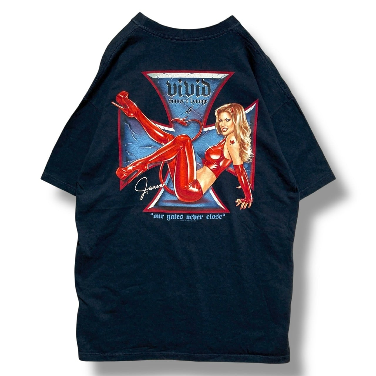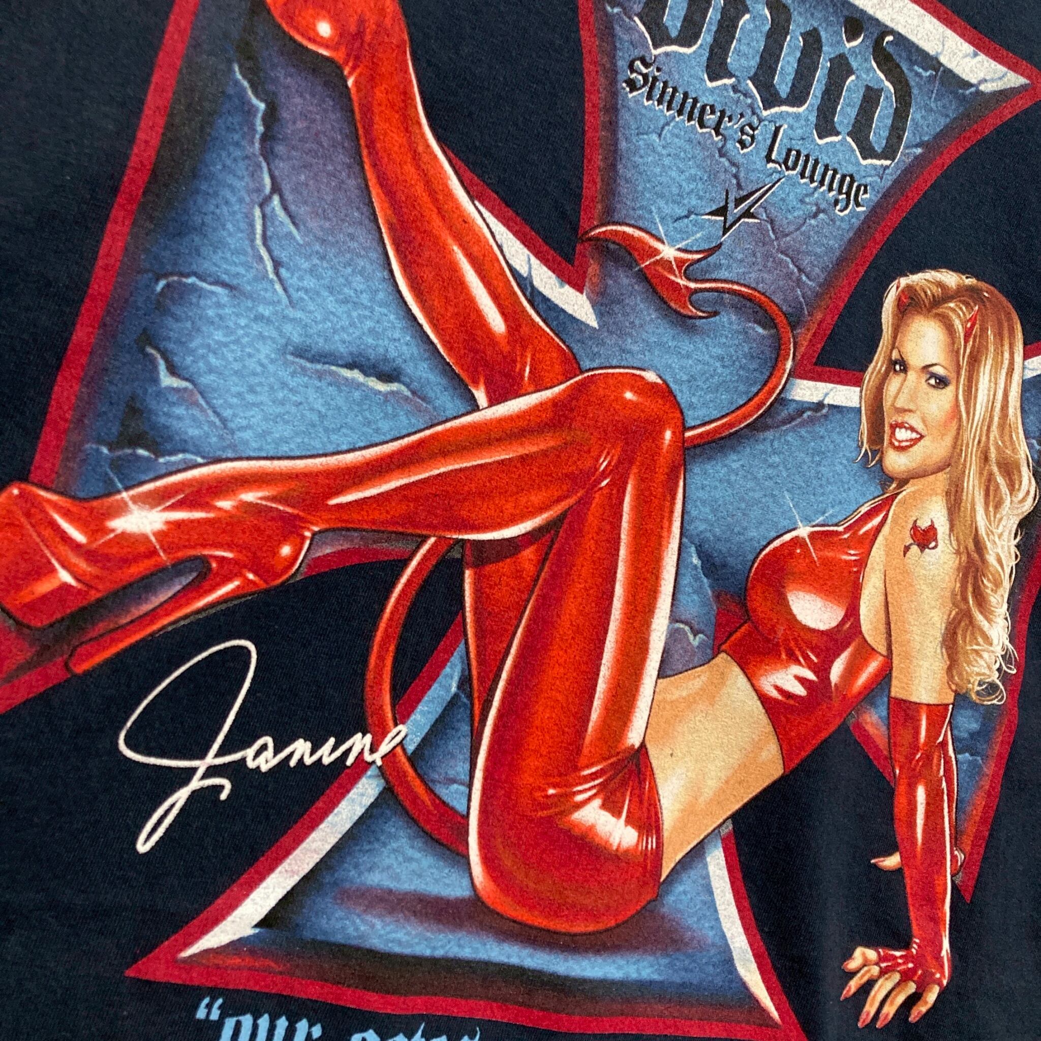 CBBG セクシー Tシャツ 90s VIVID ピンナップガール 悪魔 アイアンクロス -