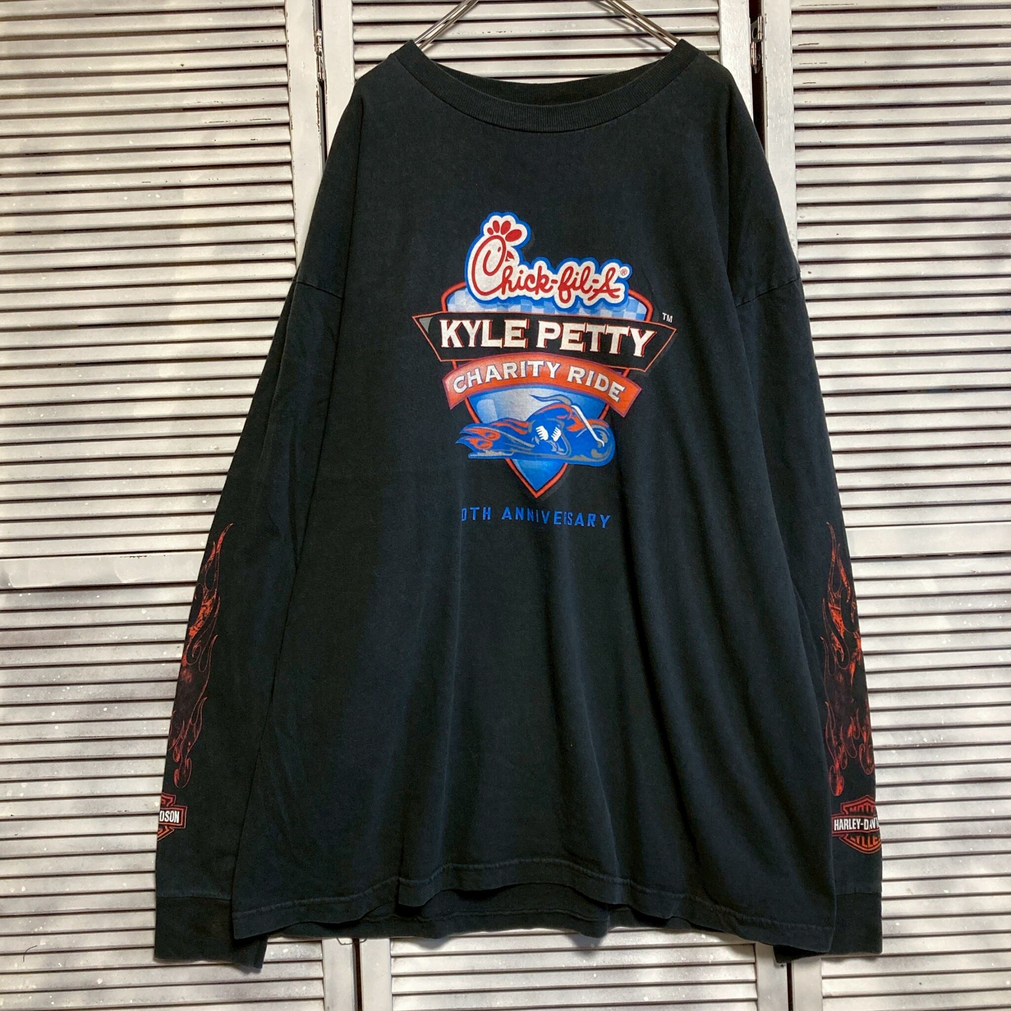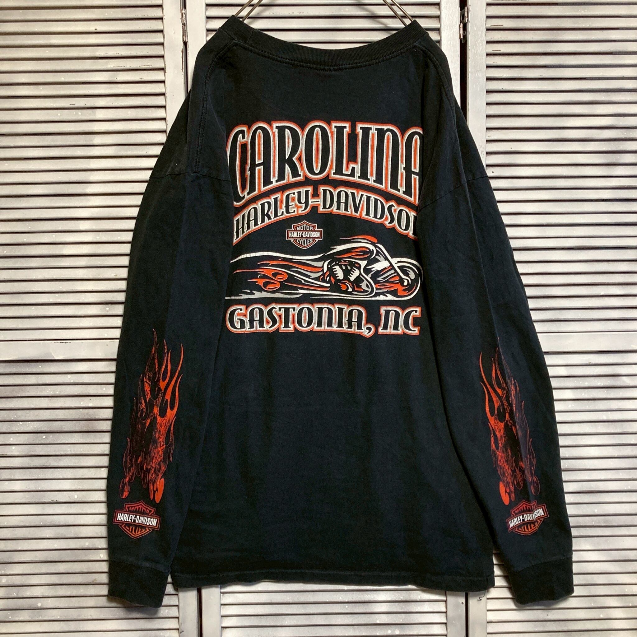 CBFB ハーレー Tシャツ 長袖 ロンT USA製 00s ダビッドソン HARLEY DAVIDSON ファイヤ フレイム 黒 90s 00s