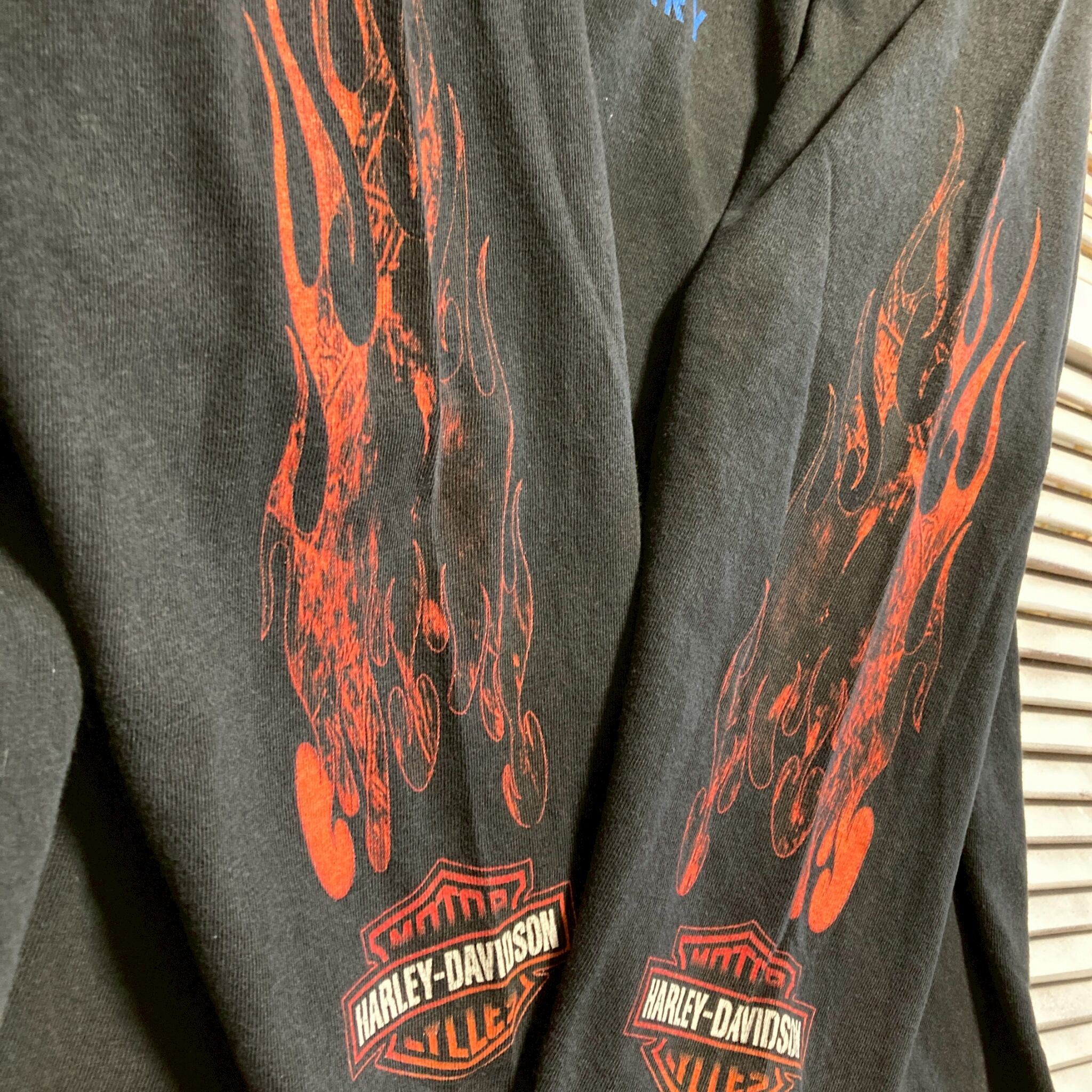 CBFB ハーレー Tシャツ 長袖 ロンT USA製 00s ダビッドソン HARLEY DAVIDSON ファイヤ フレイム 黒
