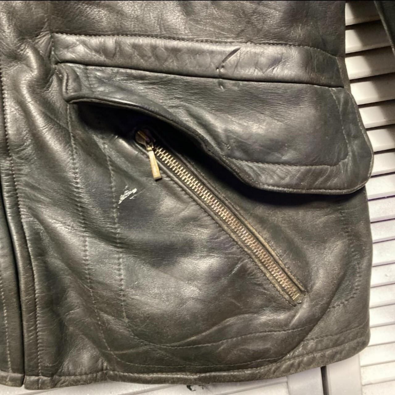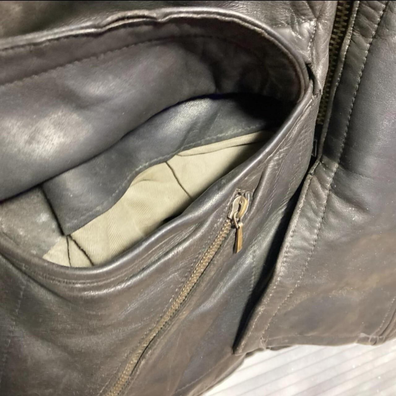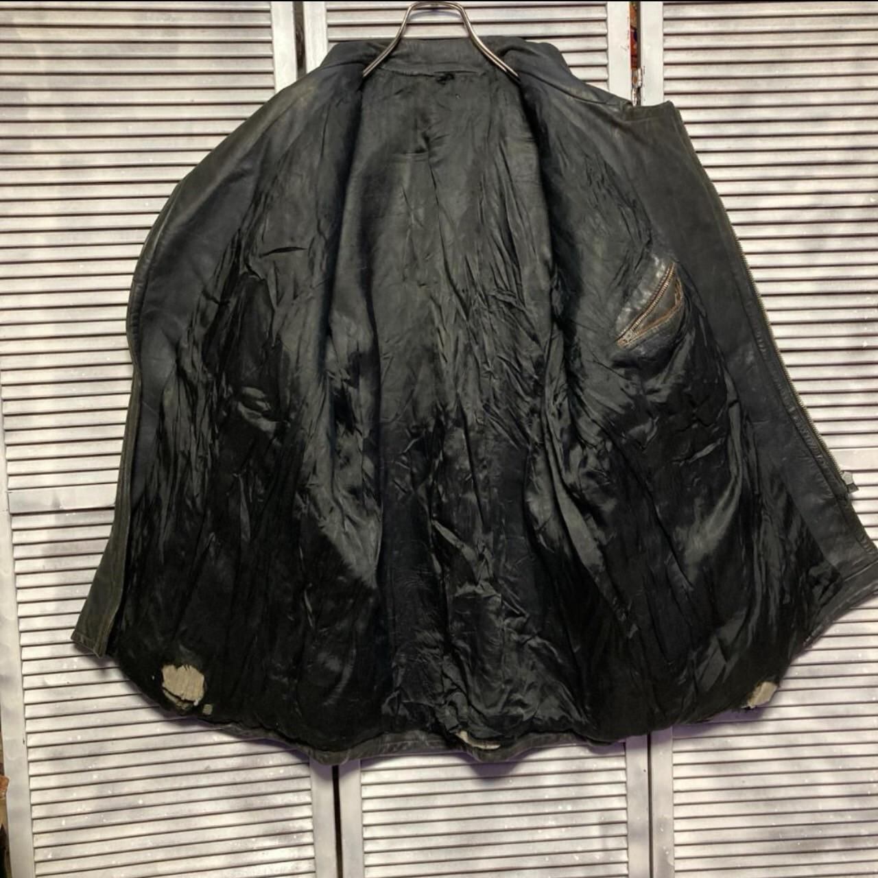 レザー ジャケット ビンテージ 古着 80s 90s 黒 ダブル レザー ジャケット 牛革 本革 ※こちらの商品は古着、ビンテージ商品となります。 簡易的なホームクリーニングは行なっておりますが、革の劣化、ダメージ、ポケット内側の破れやボタン等の破損、シミやカビ、小穴等が生じている可能性がございます。可能な限り破損部分等はお写真にてわかるよう掲載しております。不安点がございましたら是非コメントにてお伺いください。